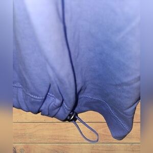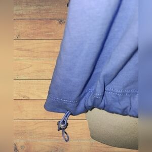 Kinda Cropped, but not too much. Hits at waist. Has toggle Pulls on both sides in back for a tighter or looser fit.