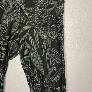 GUC, great stretch, has leaves scene and big cats print, cinched ankle detail on back, hidden waist pocket