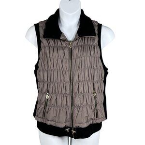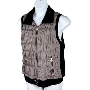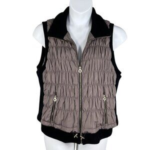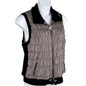 Calvin Klein Performance Women 2X Quilted Taupe Vest Ribbed Blk Trim Zip Pockets