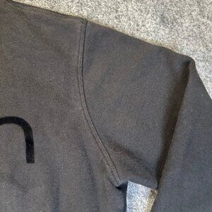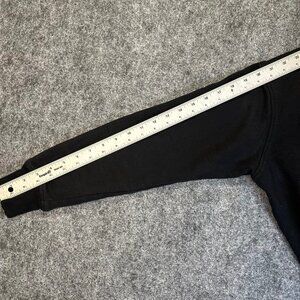 Black cotton-blend fleece with a textured black lettering SpellOut logo on the front. Classic crewneck and cropped hem create a vintage casual look. A little worn — sold as-is with no tags, perfect for layering or retro athleisure style.