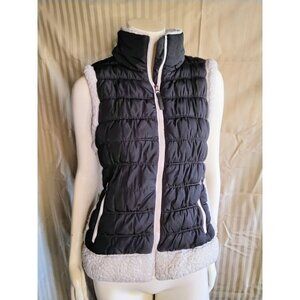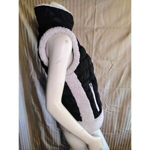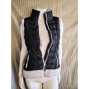 Calvin Klein Performance Womens Puffer Vest Medium Black & White Sherpa-Lined Zi