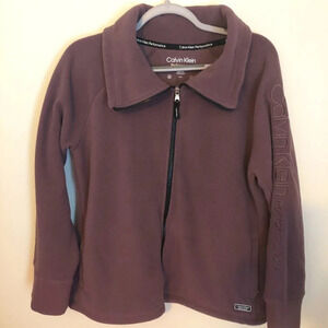 Calvin Klein Performance Women's Purple Fleece Jacket. Full zip with logos and 2 zipper pockets. Size XL. Arm has embroidered LOGO. Is machine washable