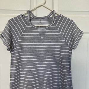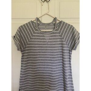 Calvin Klein Performance Women’s Small Tunic Top Gray White Stripe Short Sleeve