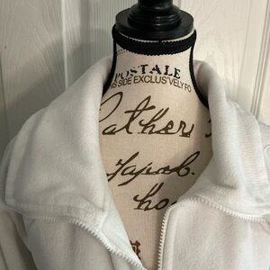 Stay cozy and stylish with this white fleece jacket. Perfect for layering in cooler weather.