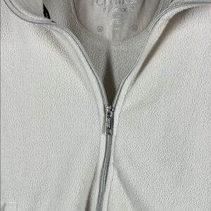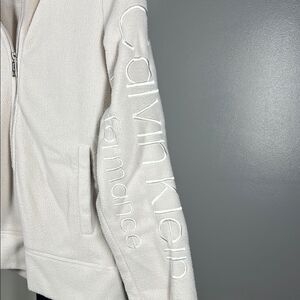 Stay cozy and stylish with this Calvin Klein white jacket. Perfect for any occasion, this jacket offers both comfort and elegance.