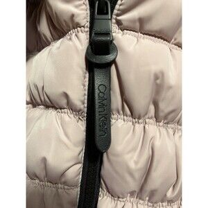 Calvin Klein Performance Womens XL Pink Puffer Vest Faux Fur Trim Zip Pockets
