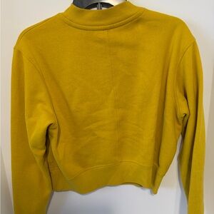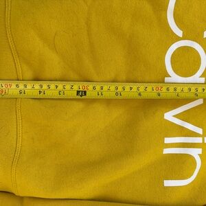 Vibrant mustard cropped sweatshirt with Calvin Klein branding. Comfortable and stylish. Size S.