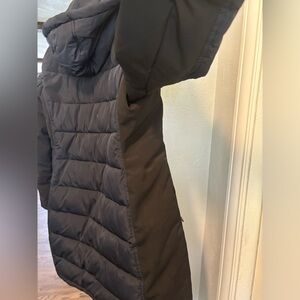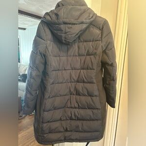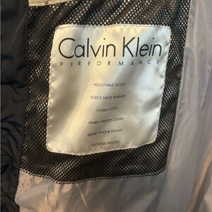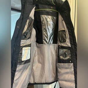 Excellent condition Calvin Klein Performance long winter coat size Small. Navy blue with black along the sides. Very heavy/thick coat.