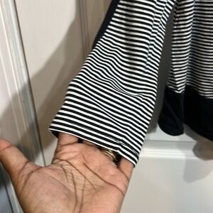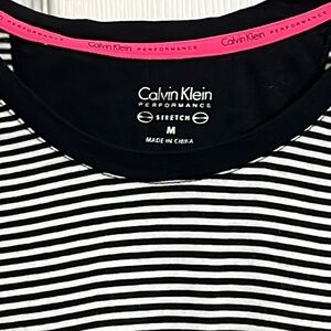 Calvin Klein Performance top - Black and white stripes - Size Medium. Diagonal hem. PTP: 19”. Preloved.