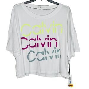 Calvin Klein Performance womans Sliced Logo Cropped T-Shirt White XL