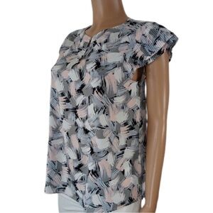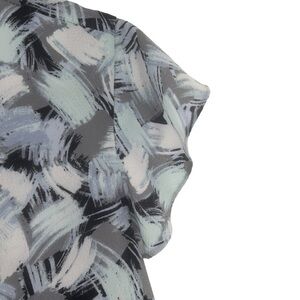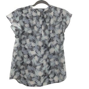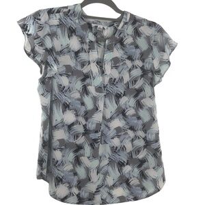 Pretty flowy v-neck blouse with hues of blue and grey.