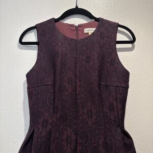 Calvin Klein Petite Size 6P Purple Floral Lace Fit & Flare Scuba Dress Glam City