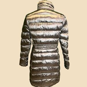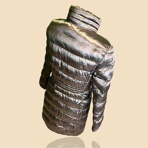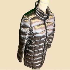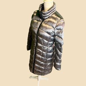 Calvin Klein Pewter Metallic Packable Down-Fill Blend Long Length Puffer Coat S