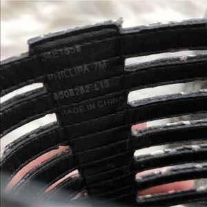 Leather. Approx 4” heel. Strappy design. Lightly padded footbed.