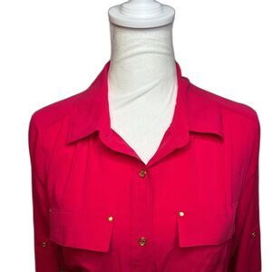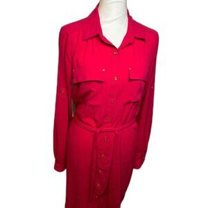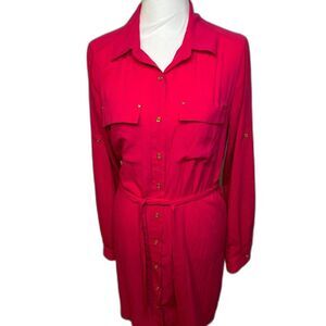 Calvin Klein Pink Button Up Shirt Dress Jacket Women Designer Stylish