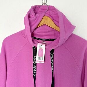 Calvin Klein Pink Cropped Pullover Hoodie ~ Small~ Drawstring, Soft, Oversized