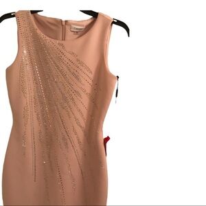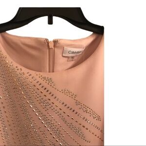Calvin Klein light rose Pink blush Embellished gold silver studded sleeveless scuba fit sheath dress size 2 new
