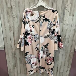 Calvin Klein Pink Floral Bell Sleeve Sheath Dress Womens Size 18 Office Church