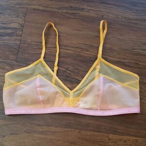 Calvin Klein Pink Orange Chic Edgy Feminine Festival Sheer Bralette Size Medium