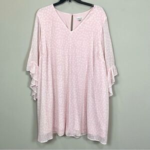 Calvin Klein Pink Trapeze Dress Dotted Chiffon 3/4 Sleeve A-Line Sz 22W NWT