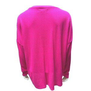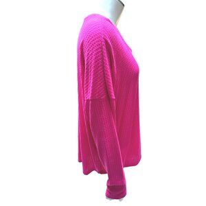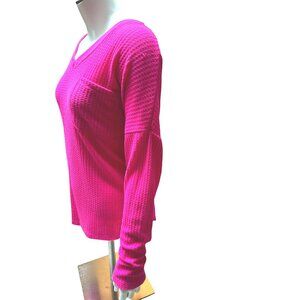 Calvin Klein Pink Waffle Knit Long Sleeve V Neck Lightweight Sweater Top Size M