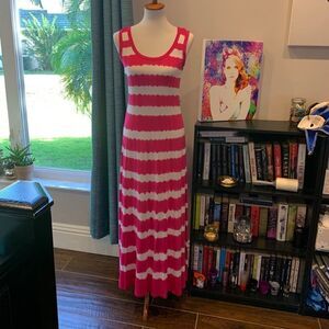 👗 Calvin Klein Pink & White Maxi Dress - Size 4