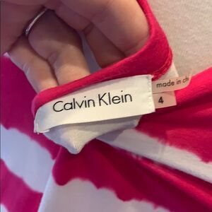 Add a touch of charm to your summer wardrobe with this delightful pink and white maxi dress from Calvin Klein! 🌸👗