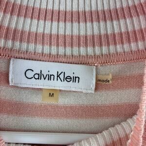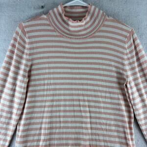 Calvin Klein Pink White Striped Mock Neck Sweater Women’s Medium Preppy Nautical
