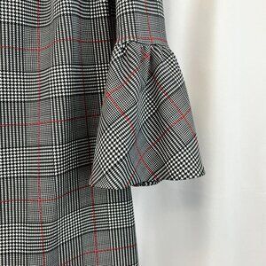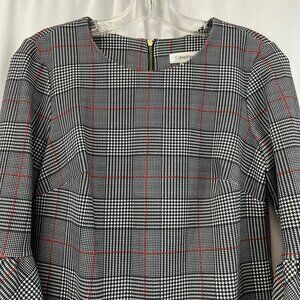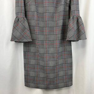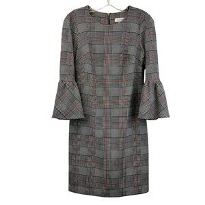 Calvin Klein Plaid Sheath Dress 3/4 Bell Sleeve Black/Multi Size 4 Zip