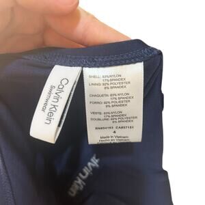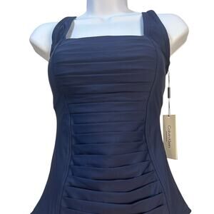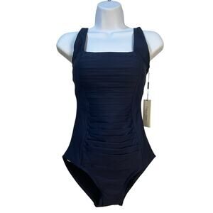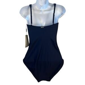 Calvin Klein Pleated Front One Piece Swimsuit Navy Blue Women 4 NWT