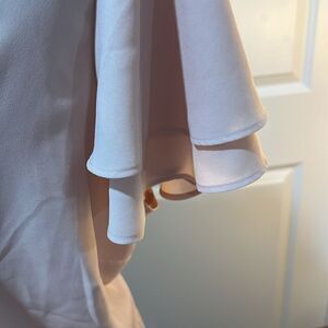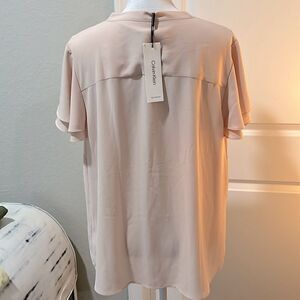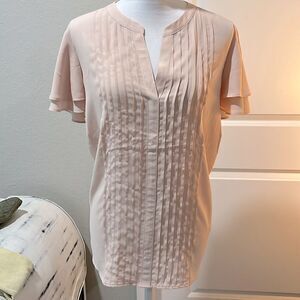 Calvin Klein Pleated Split V Neck Cap Flutter Sleeve Blush Color Blouse