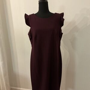 Elegant backless dress by Calvin Klein. Features a rich plum color. Perfect for evening wear.