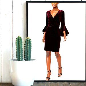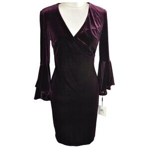 Calvin Klein Plum Purple Velvet Flare Bell Sleeve Warp Knee Length Dress…