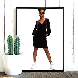 Calvin Klein Plum Purple Velvet Flare Bell Sleeve Warp Knee Length Dress Size 4