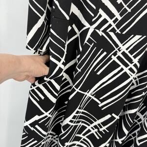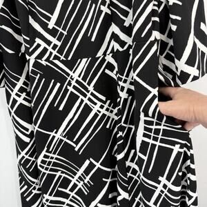 Light pilling next to pockets. Calvin Klein Plus 16W Midi Sheath Dress Black White Puff Sleeve Pattern with pockets