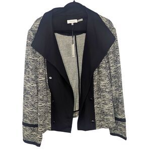 Calvin Klein Plus 20W Tweed Blazer Open Front Black White Business Casual NWT