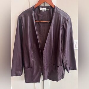 Calvin Klein Plus Size Faux Leather Open Front Jacket Aubergine Plum 20W