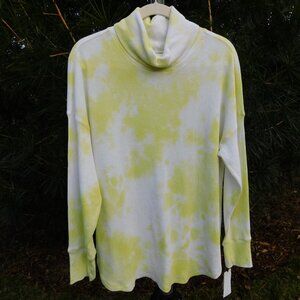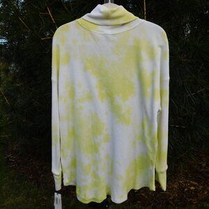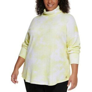 Calvin Klein Performance yellow/white tie-dye look lightweight stretchy waffle-knit turtleneck top with rounded hem