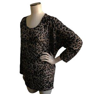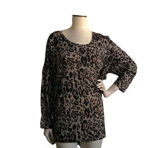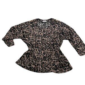 Calvin Klein Plus Sz 1X Top Dolman Sleeve Stretch Leopard Gold Buttons 212J