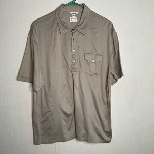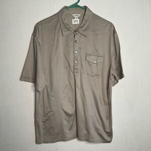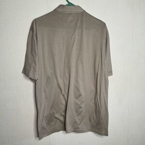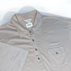 Calvin‎ Klein Polo Shirt Mens Large White Beige Grey Stripe Cotton Short Sleeve