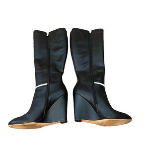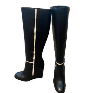 Calvin Klein Poloma Tall Black Wedge Boots w/ White Stripe Size 9 Women's