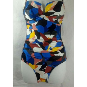 Calvin Klein Stained Glass Pop Art Convertible Bandeau One-piece Bathing Suit 16 - new with tags - spots for removable straps but not included.