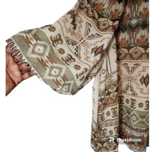 Calvin Klein Printed Crew Neck Elbow Length Sleeve Blouse Size Large