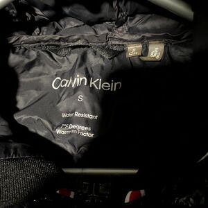 Calvin Klein Puffer Jacket Men's S Black Hooded Zip-Up Water Resistant 7F Warm