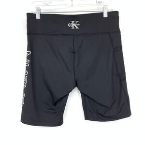Calvin Klein Pull On Athletic Bike Shorts Womens Size XL Black Side Logo