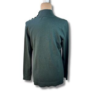 Calvin Klein Pullover Mock Neck Sweater Womens M Green Malachite Gold Button NEW