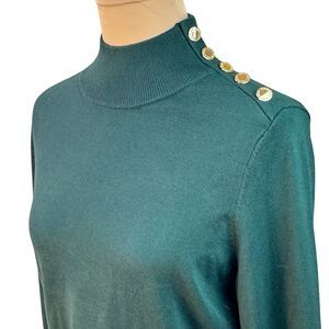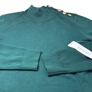 NWT Calvin Klein Sweater Womens Medium Green Malachite Mock Neck Gold Button Pullover Size Medium