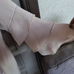 Calvin Klein Pullover SzL Ruffle Sleeve Pale Pink Poly/Spandex Round Neck Fem