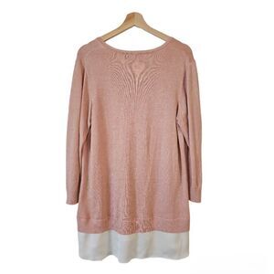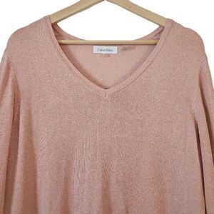 Calvin Klein Pullover Tunic 2 PC Sweater Silk Blend Rose Gold Sparkle Stretch L