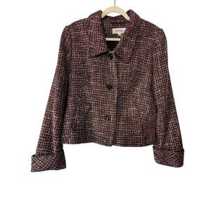 Calvin Klein Purple & Black Tweed Feel Three Button Jacket Blazer Sz 12 | GUC